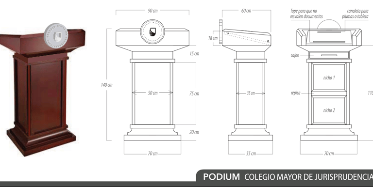 Mobiliario para aulas, letreros volumétricos, display, vinil en muros y comunicación gráfica.